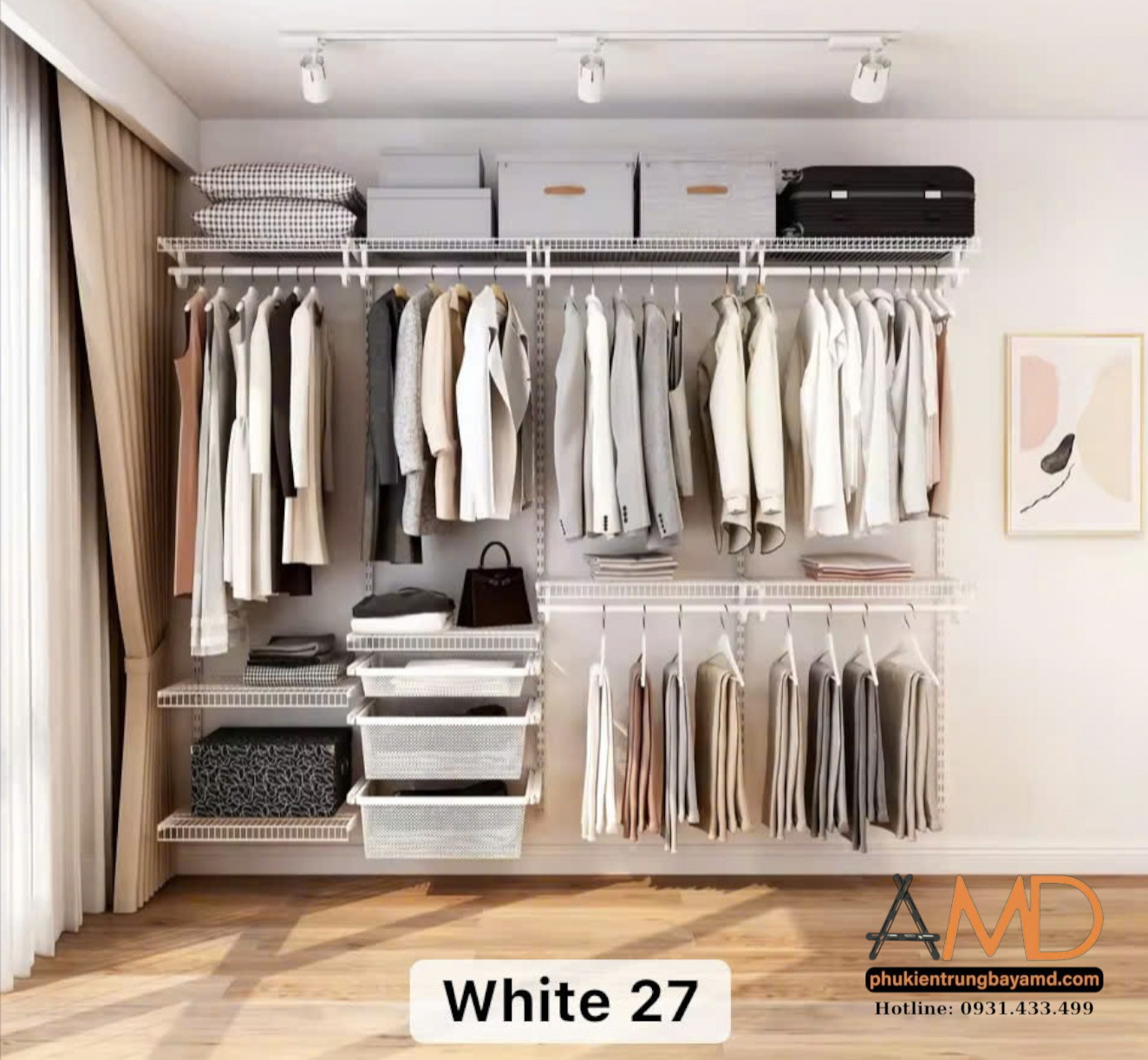 Bộ kệ quần áo AMD với bộ thanh ray tùy chỉnh chuyển hoá không gian thô cứng thành sàn diễn của bạn